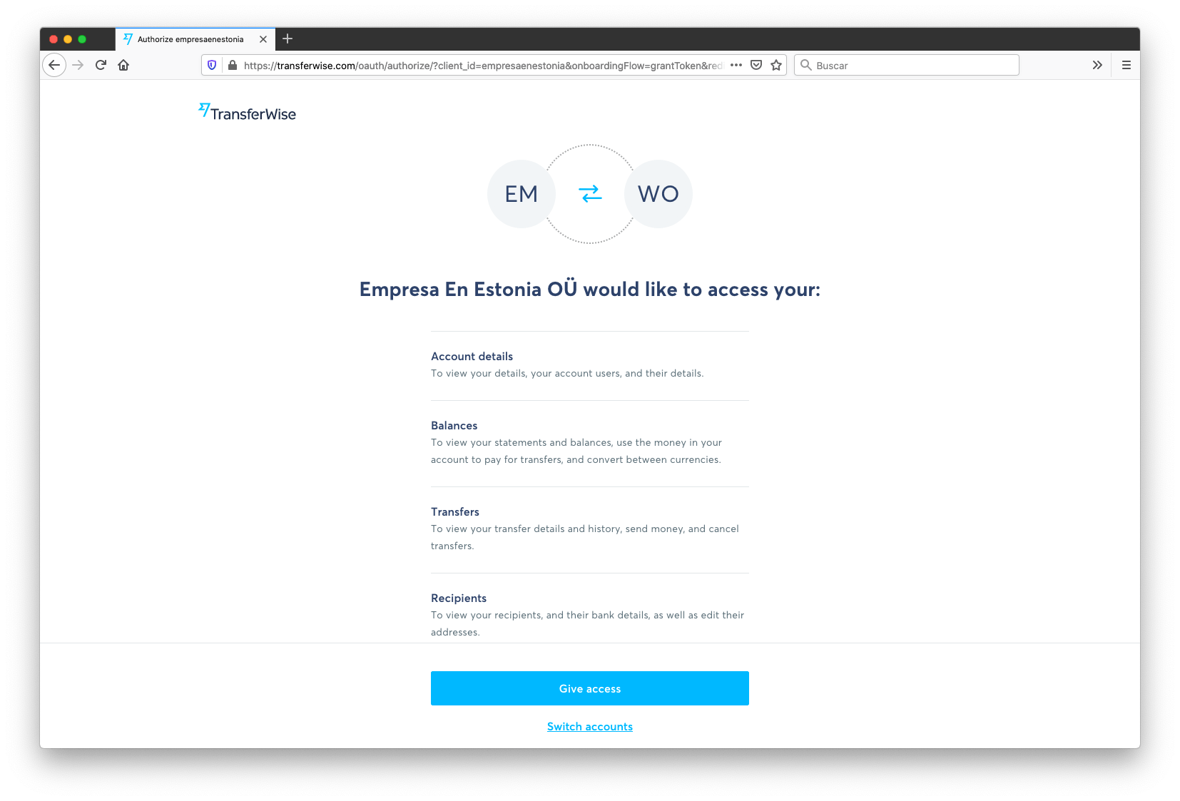 Wise launched a new authentication method, much more secure than the previous one, which required an API key. The new method requires you to access your Wise account and grant us permission to access your movements, transactions, and purchase and sales information.